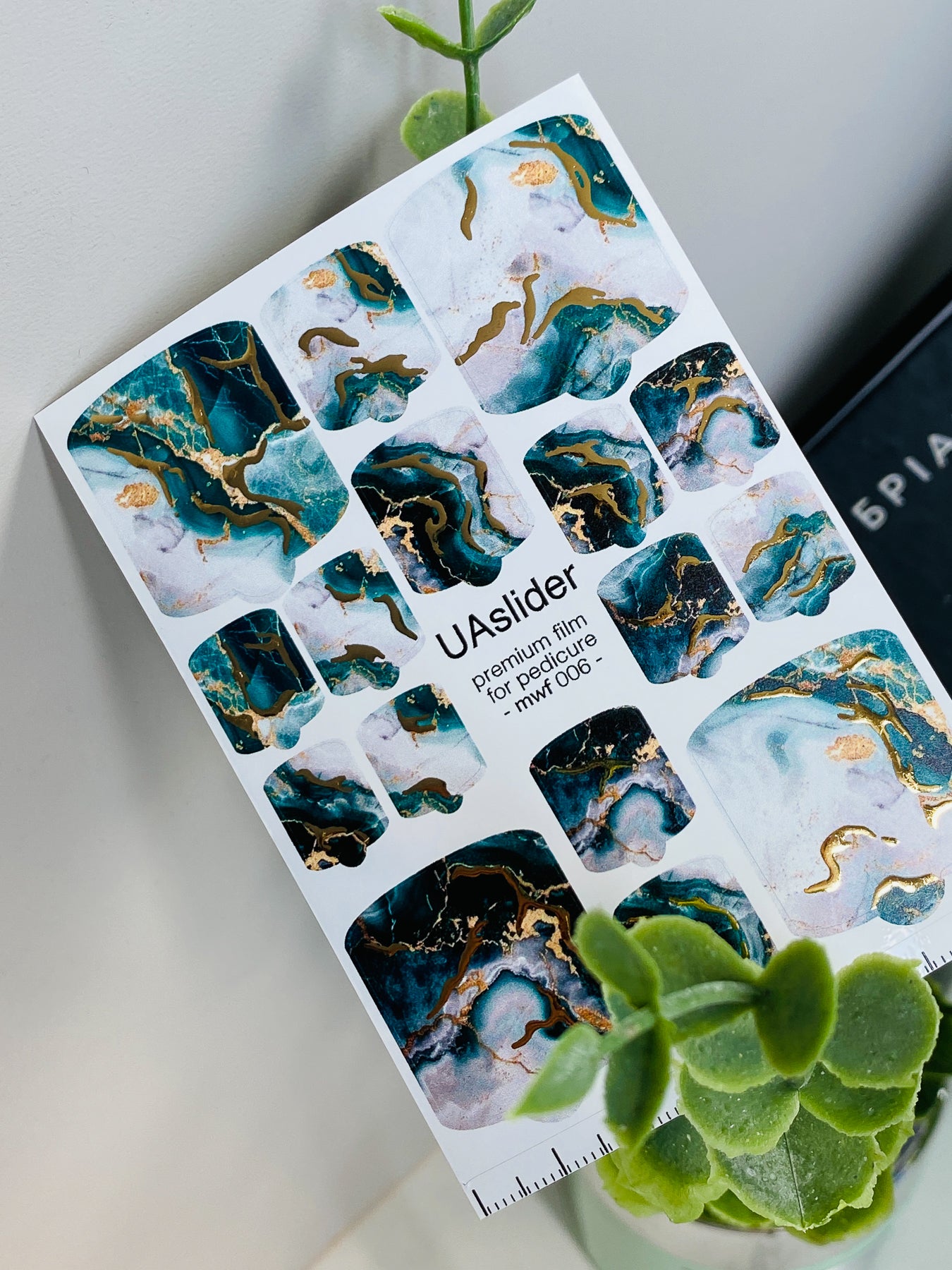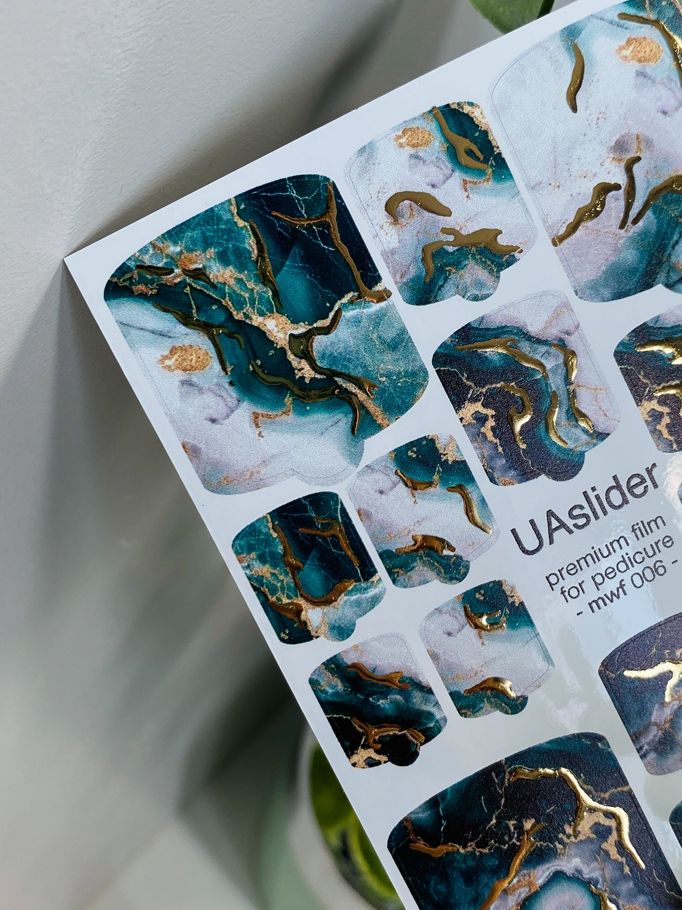 Pedicure nail wrap films mwf-006 | Nail Wrap Films for Pedicure | Emerald Marble with Gold Foilmwf_006