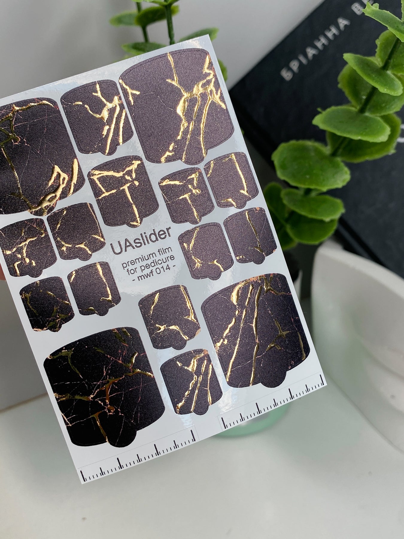 Pedicure nail wrap films mwf-014 | Nail Wrap Films for Pedicure | Chocolate Marble with Gold Foil