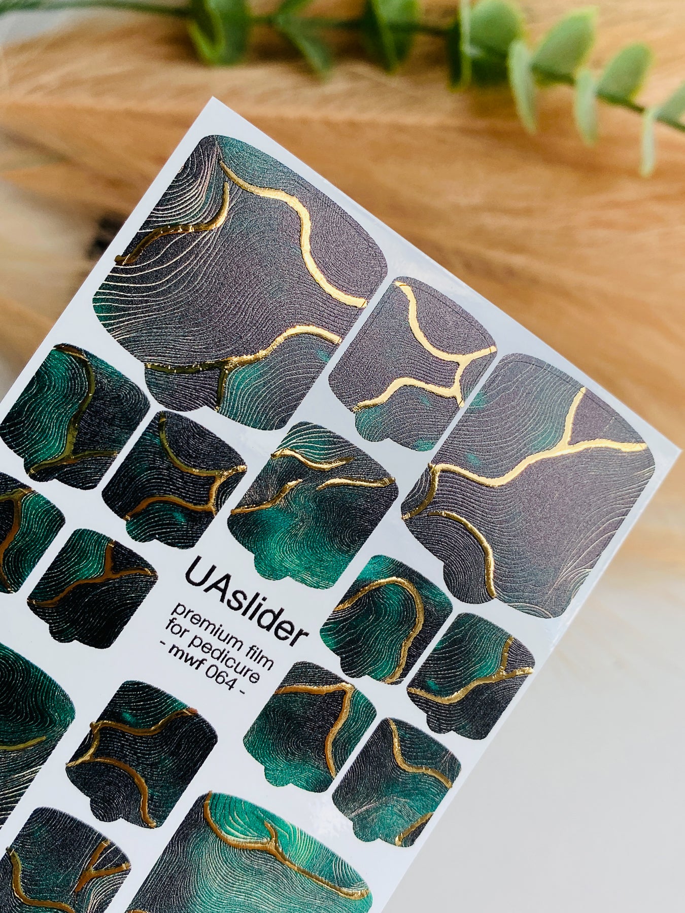 Pedicure nail wrap films mwf-064 | Nail Wrap Films for Pedicure | Deep Green Marble with Gold Foil Veinsmwf_064