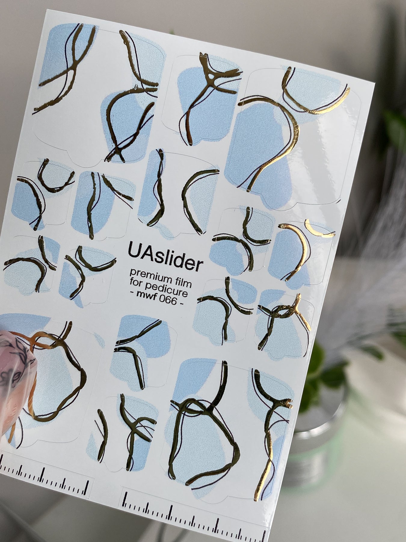 Pedicure nail wrap films mwf-066 | Nail Wrap Films for Pedicure | Light Blue Abstract Design with Gold Foilmwf_066