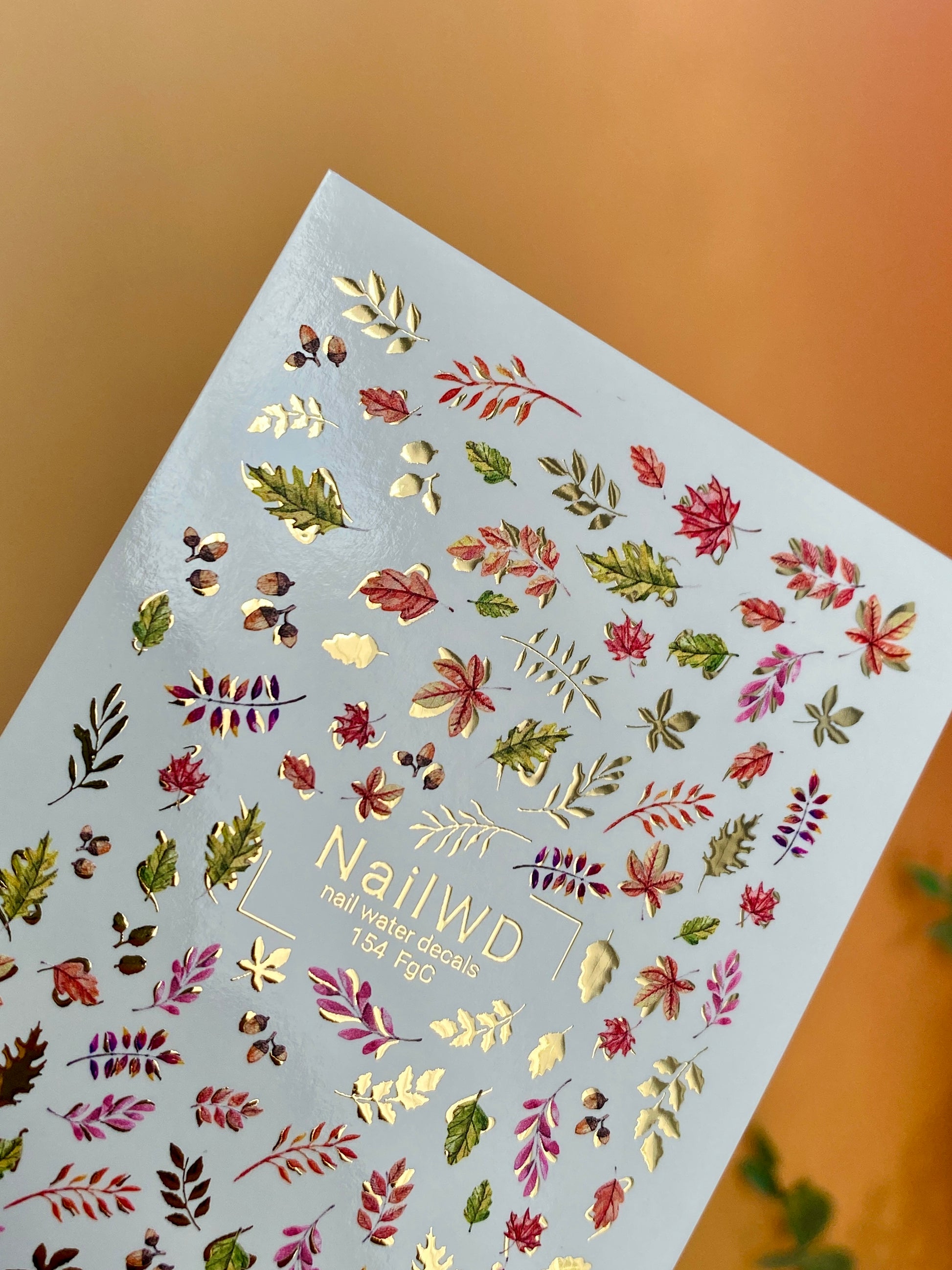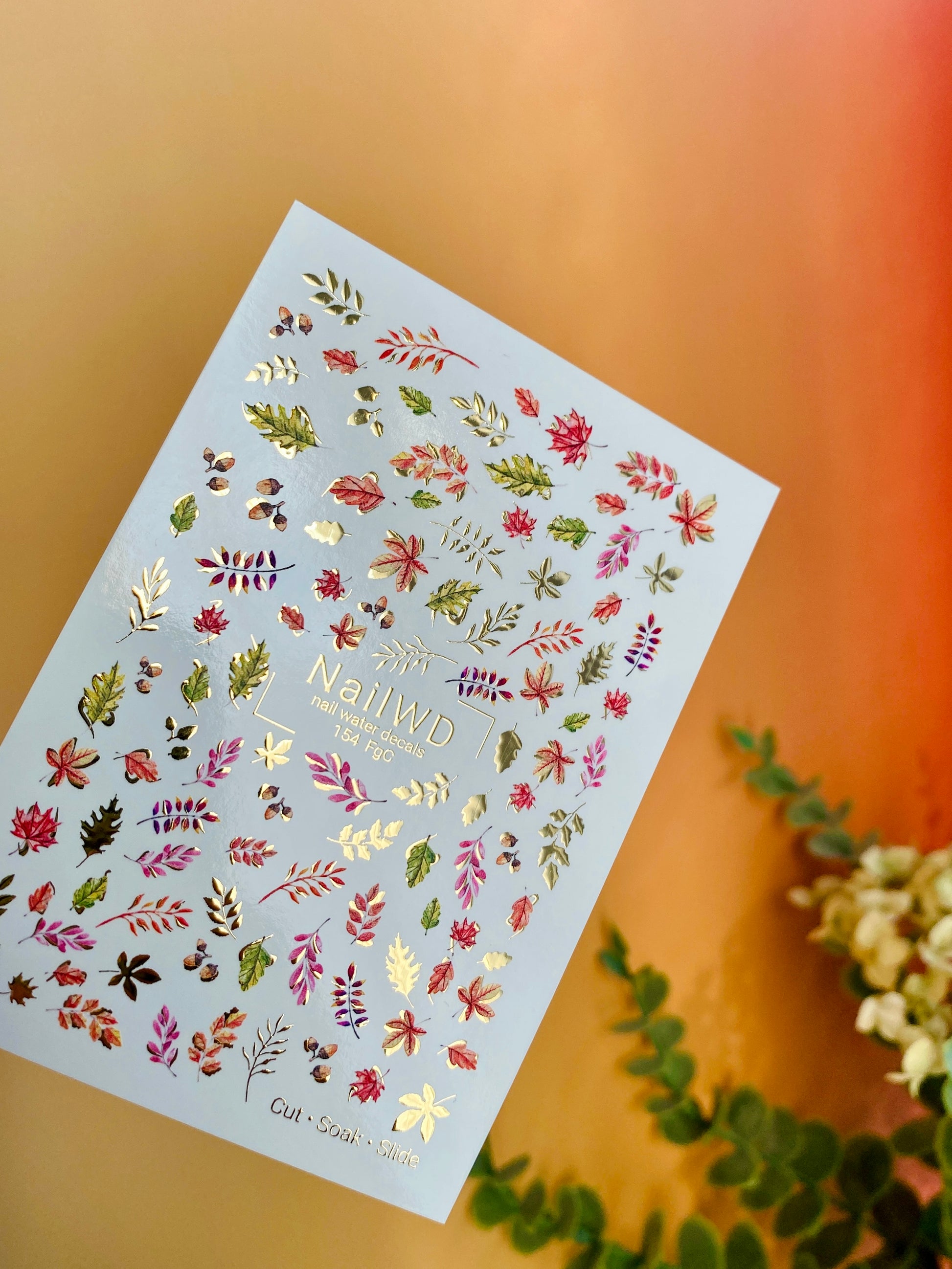 Decalcomanii de apă pentru unghii 154 Nail WD | Decalcomanii pentru unghii cu alunecare pe apă Mix de frunze de toamnă | Decalcomanii de apă pentru unghii de toamnă