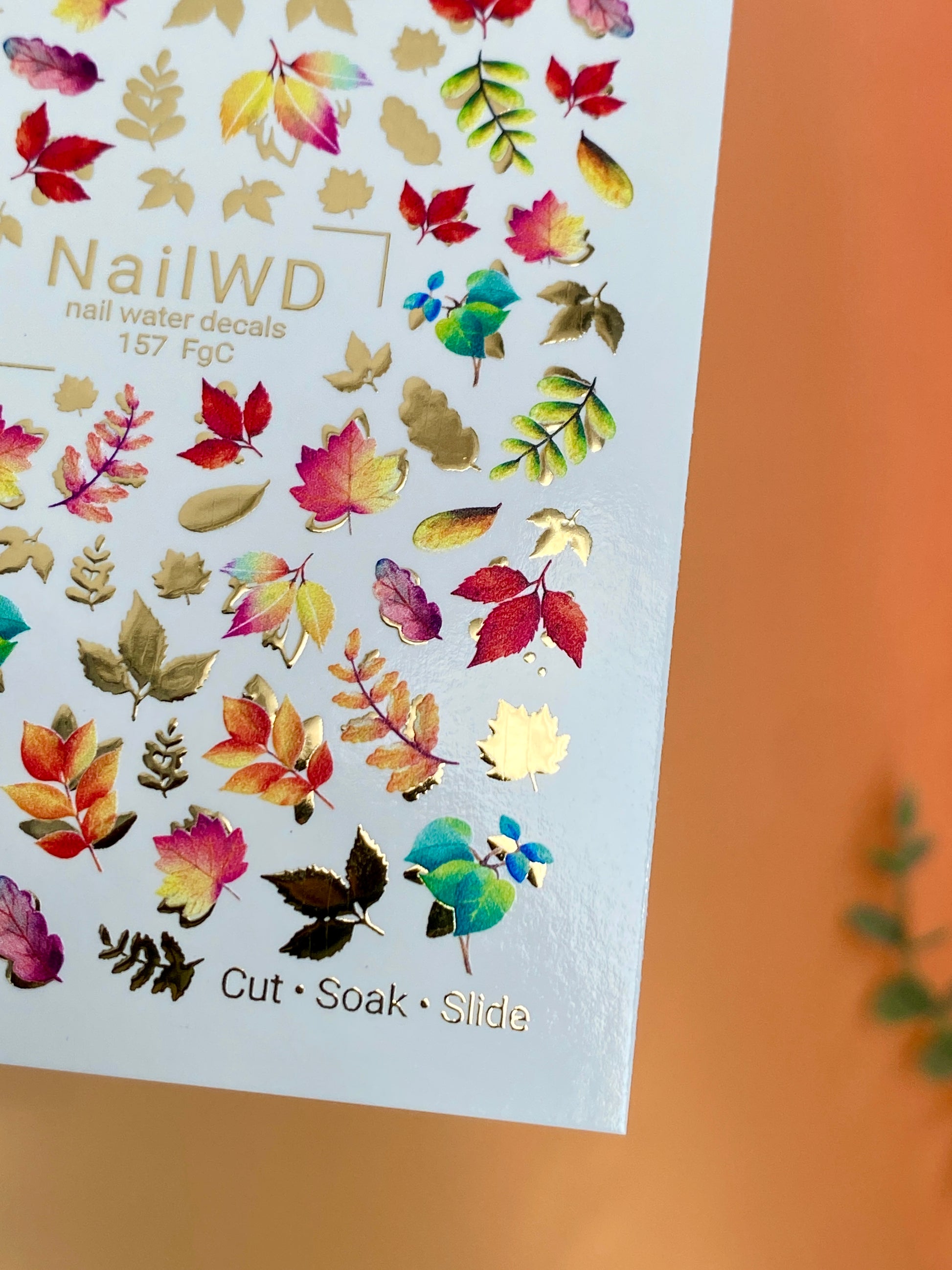 Decalcomanii de apă pentru unghii 157 Nail WD | Decalcomanii pentru unghii cu alunecare pe apă Frunze de toamnă colorate | Decalcomanii de apă pentru unghii Mix de frunze de toamnă0157_FgC