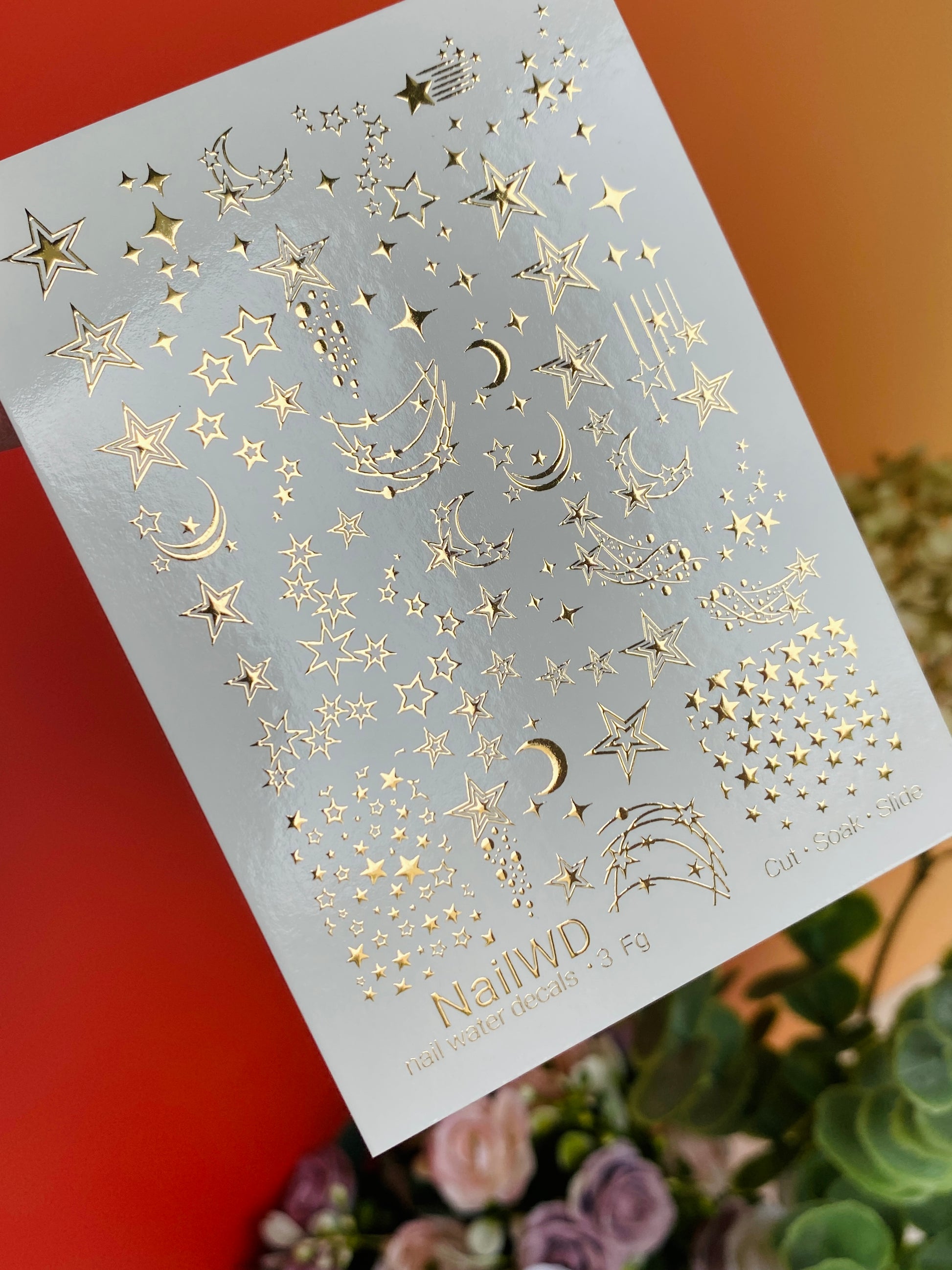 Decalcomanii de apă pentru unghii 3 NailWD | Decalcomanii pentru unghii cu alunecare de apă cu stele și luni aurii | Artă unghială cerească0003_Fg