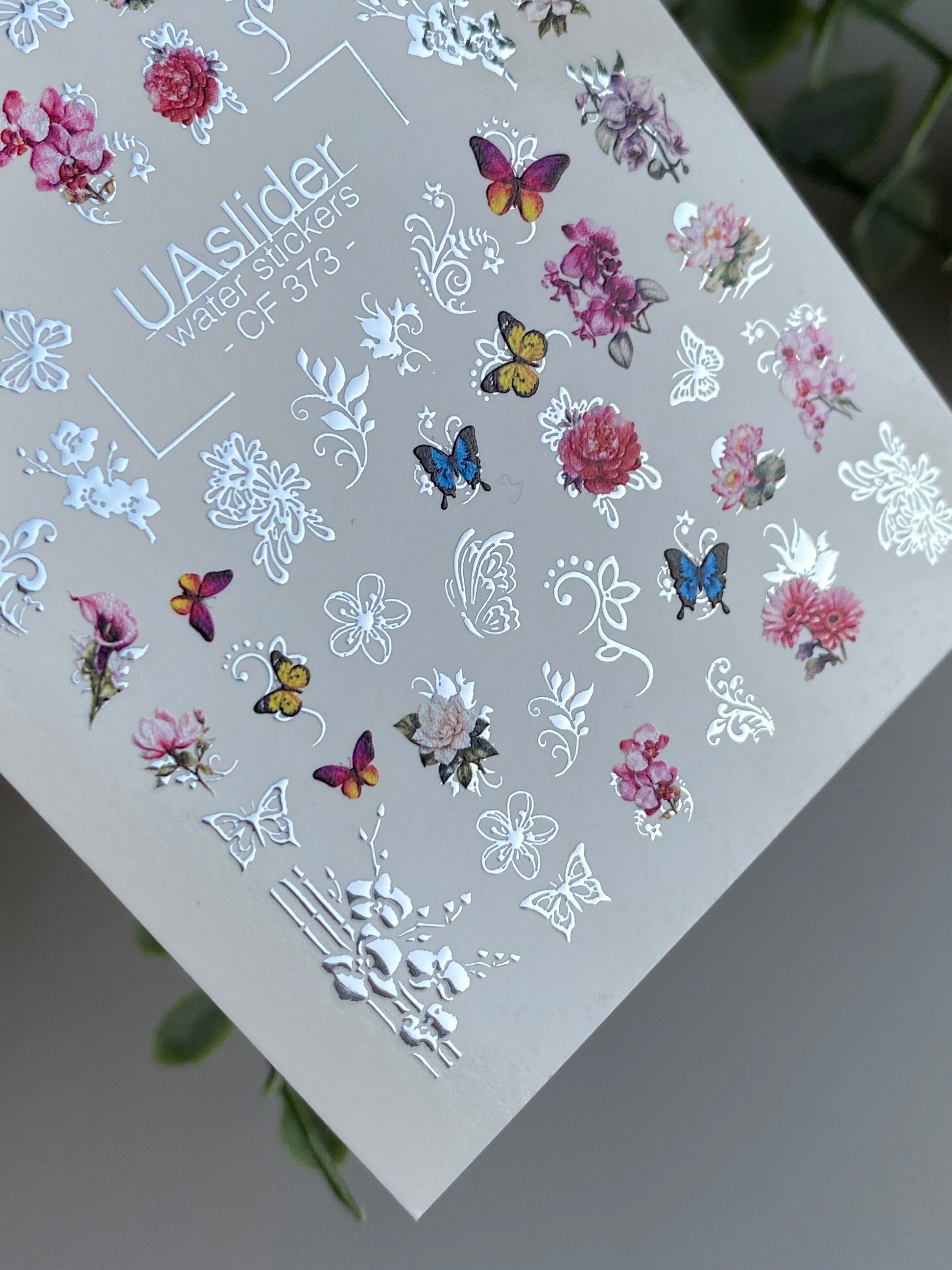 Decalcomanii de apă pentru unghii CF-373 | Decalcomanii florale pentru unghii cu alunecare pe apă | Fluturi și modele ornamentale