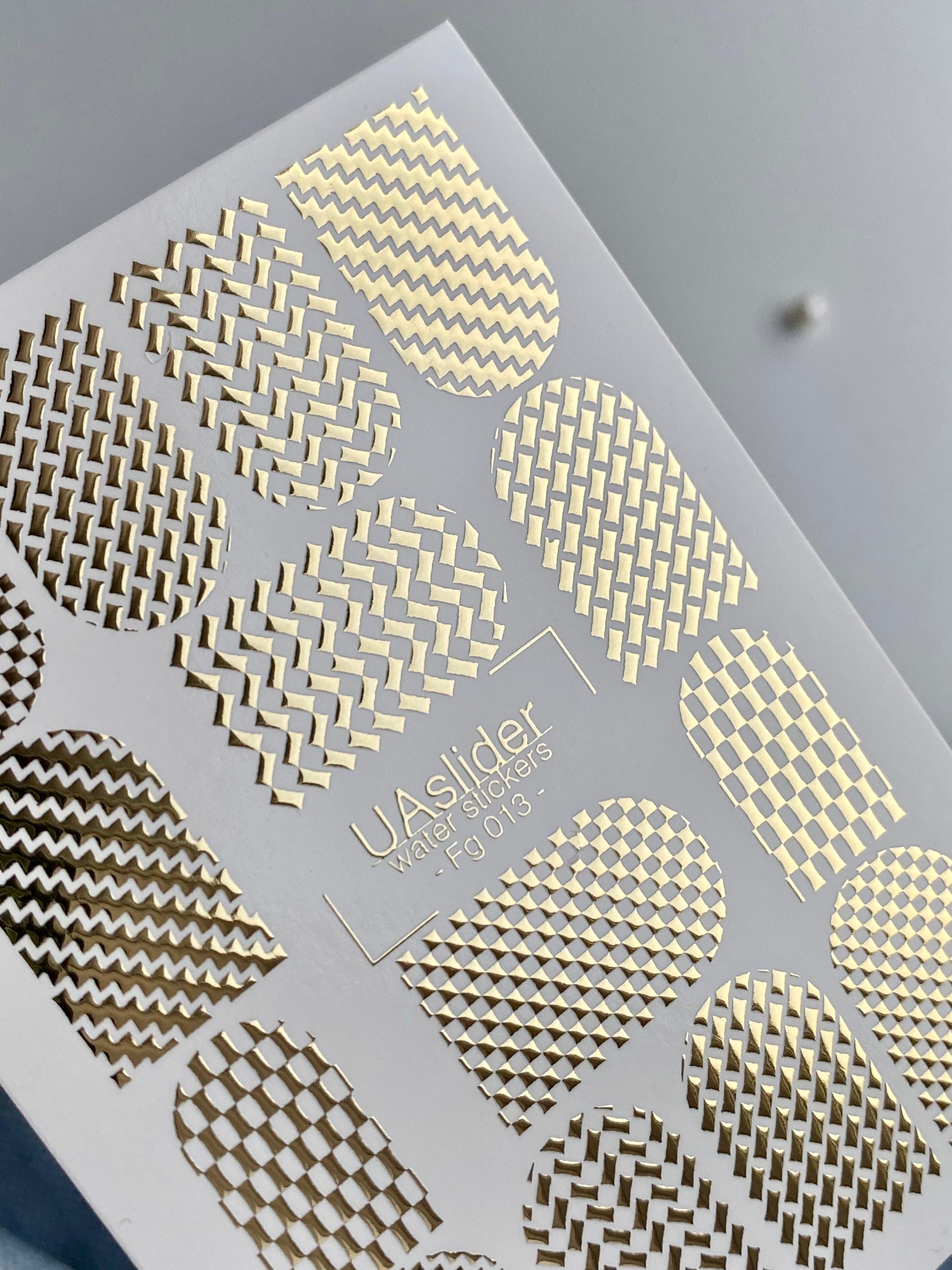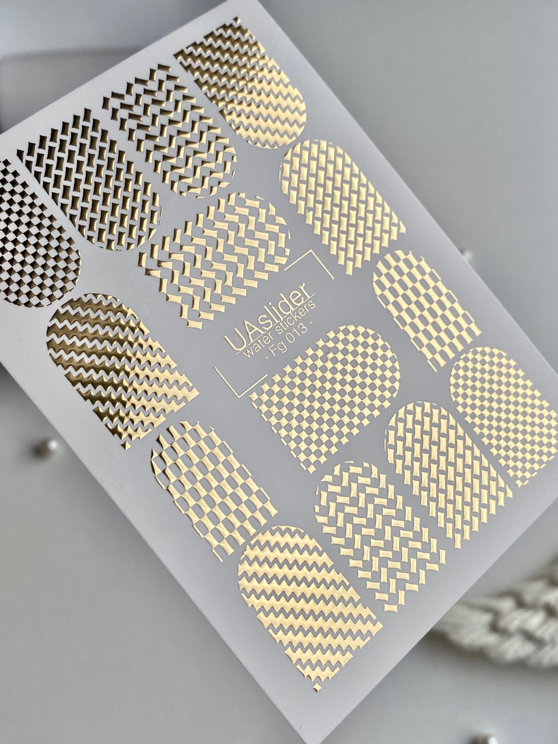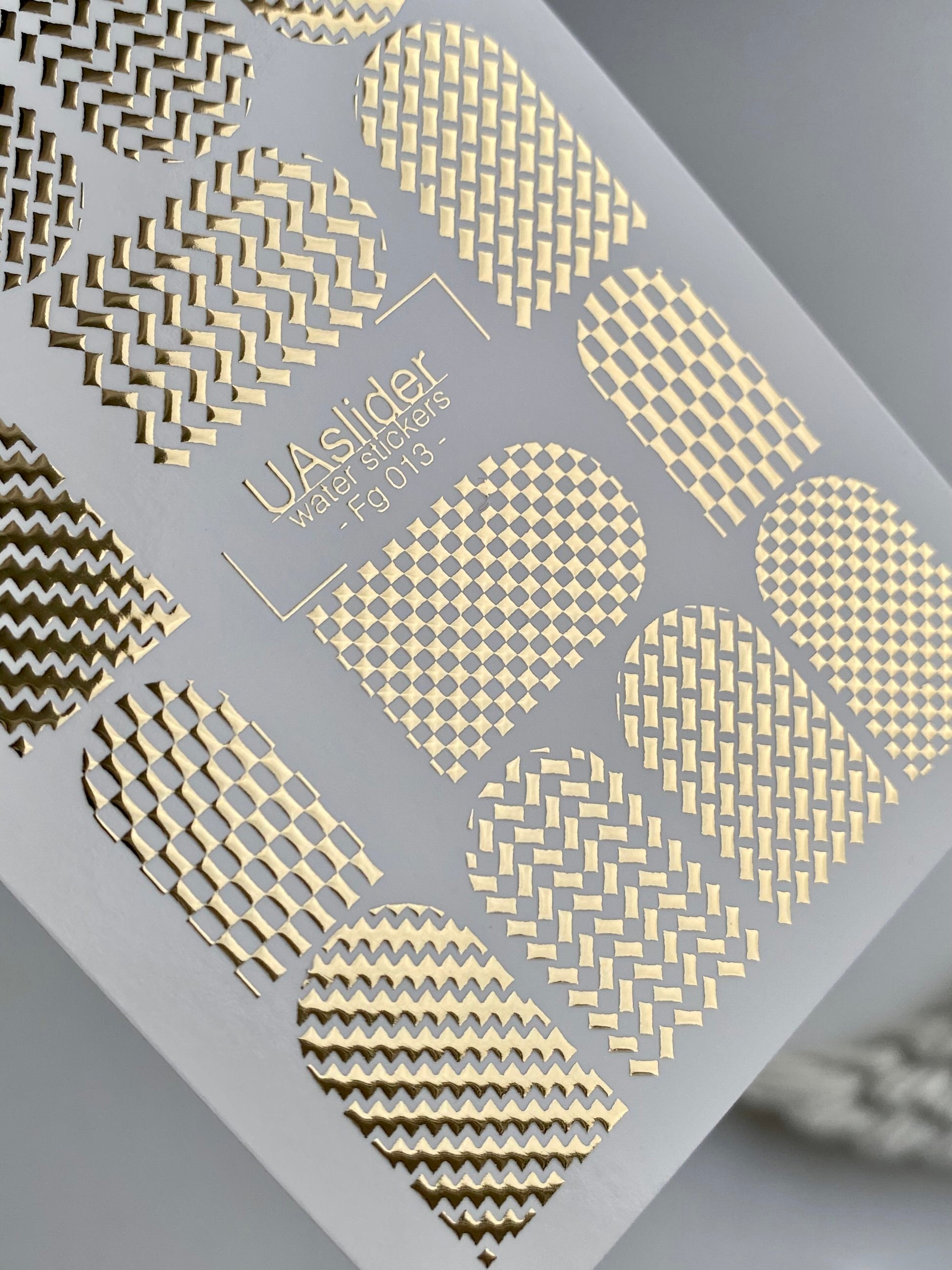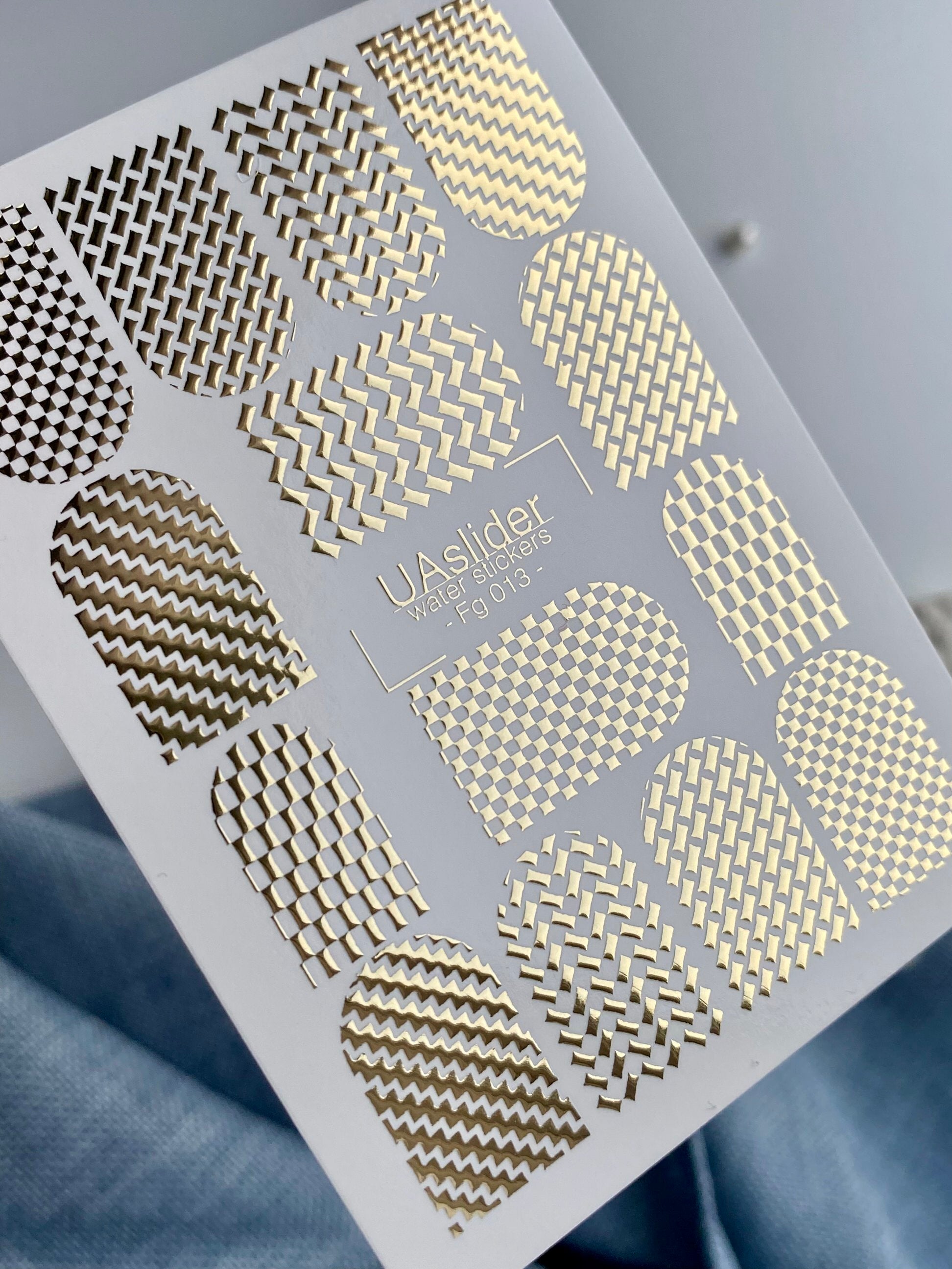 Decalcomanii de apă pentru unghii Fg-013 | Decalcomanii geometrice pentru unghii cu folie aurie | Modele complete pentru unghiiFg_013
