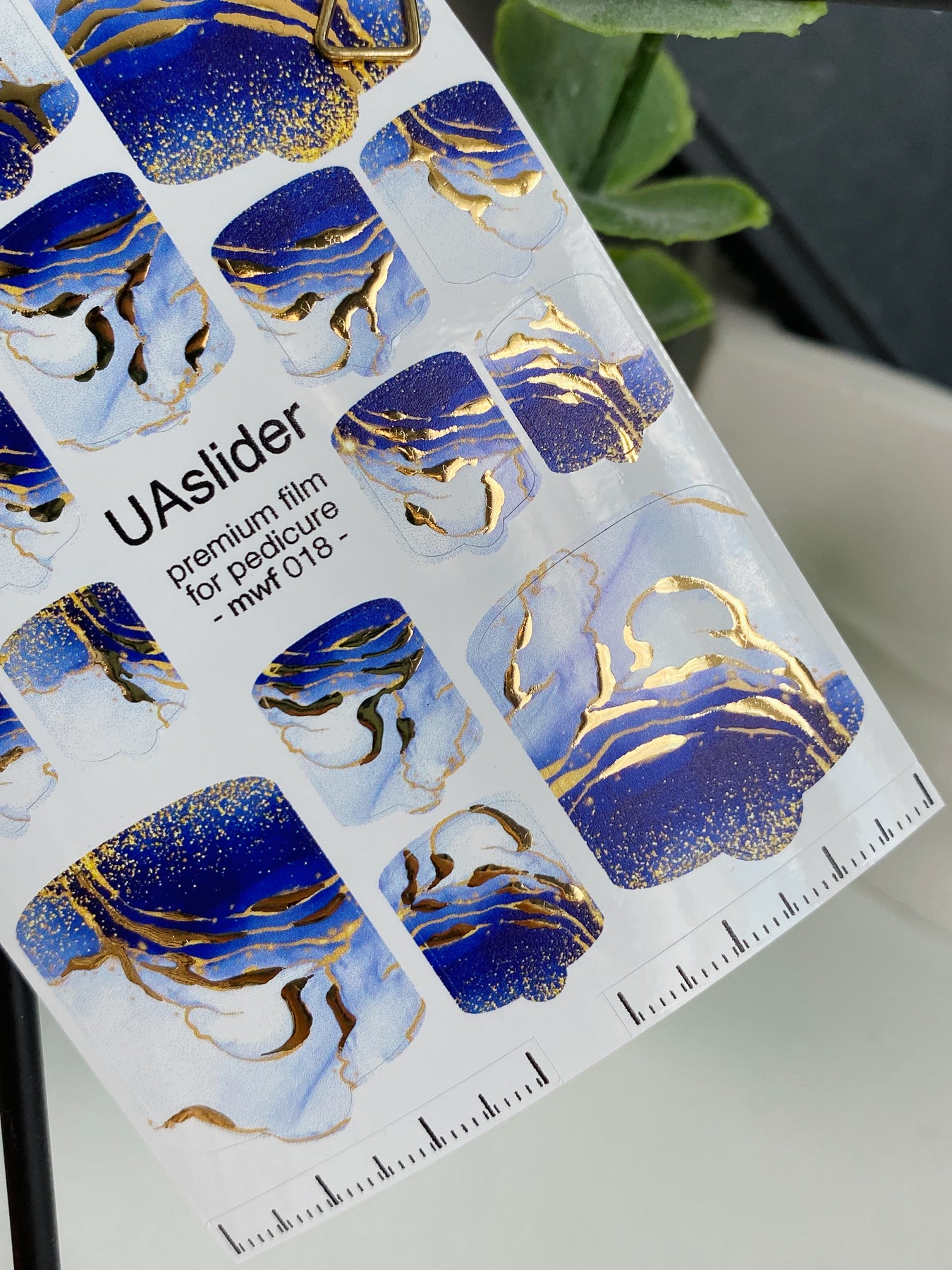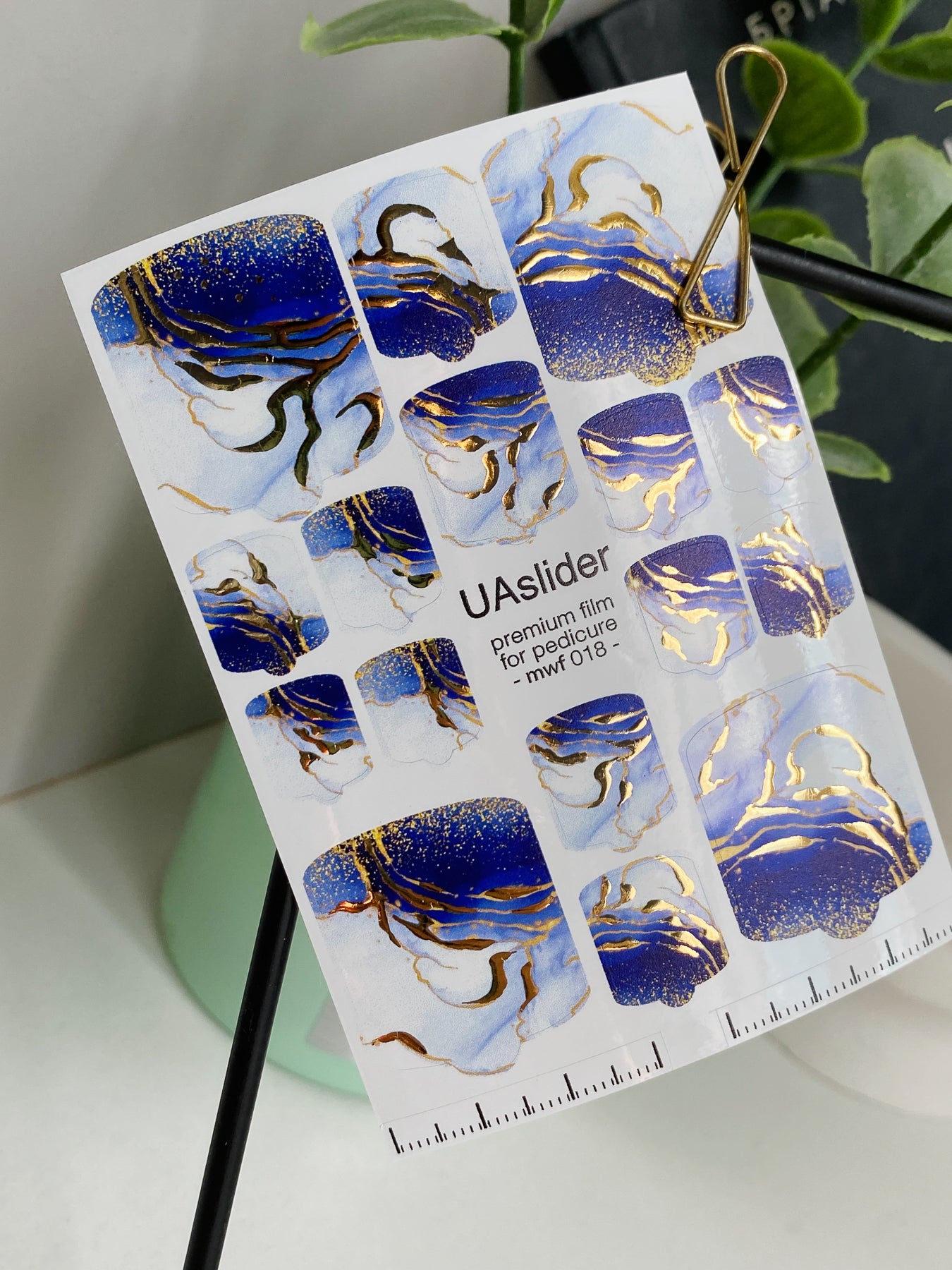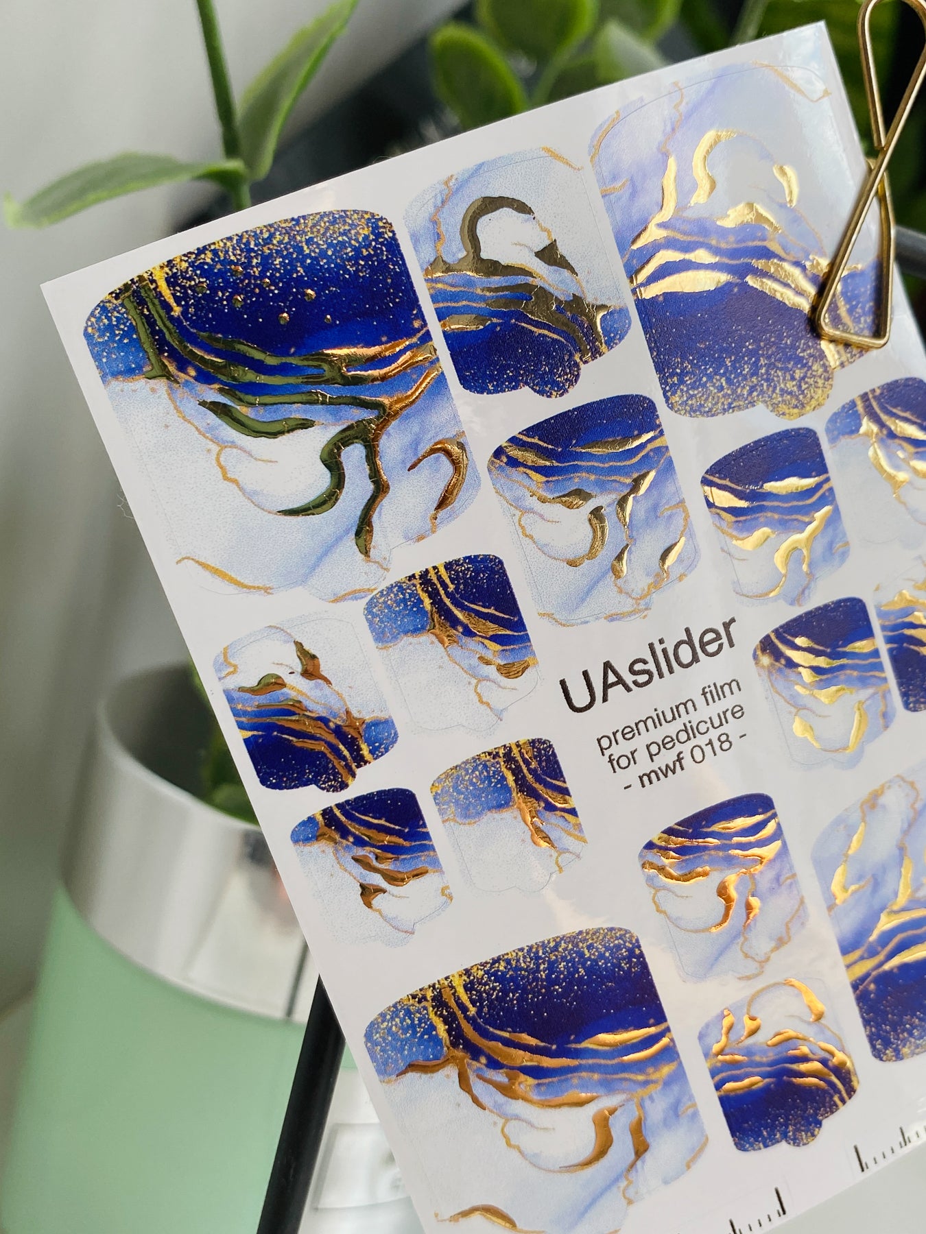 Filme pentru înfășurarea unghiilor pedichiură mwf-018 | Filme pentru înfășurarea unghiilor pedichiură | Marmură albastru alb cu folie auriemwf_018