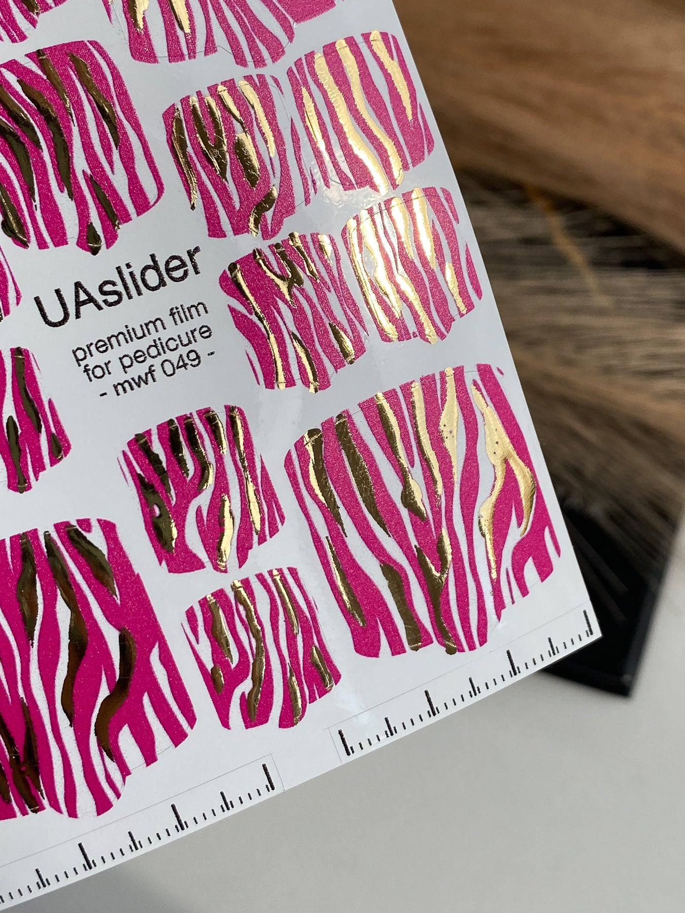 Pedikür tırnak sargı filmleri mwf-049 | Pedikür için Tırnak Sargı Filmleri | Altın Varaklı Sıcak Pembe Zebra Desenimwf_049